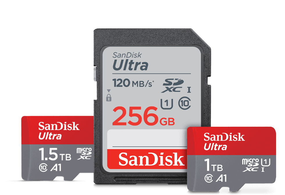 With capacities up to 1.5 TB, SanDisk Ultra memory cards give you plenty of room for your favorite videos, photos, music, and more.1