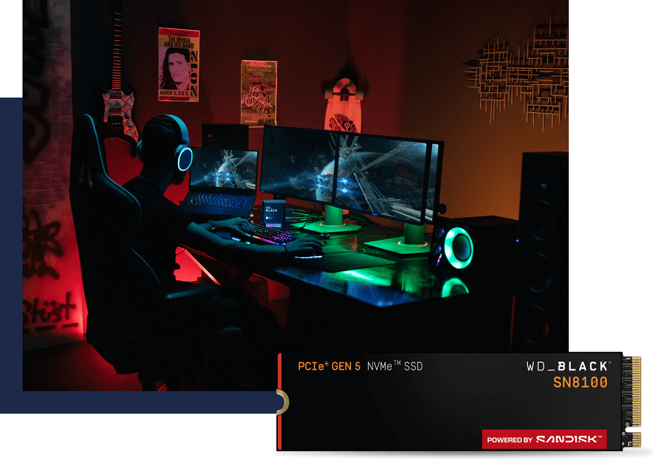 - Aplica solo a SanDisk Desk Drive, unidad SSD NVMe™ SN850X de WD_BLACK, unidad SSD portátil de SanDisk Extreme, NVMe™ SN850P de WD_BLACK para Consolas PS5®, y unidad SSD NVMe™ SN8100 de WD_BLACK.