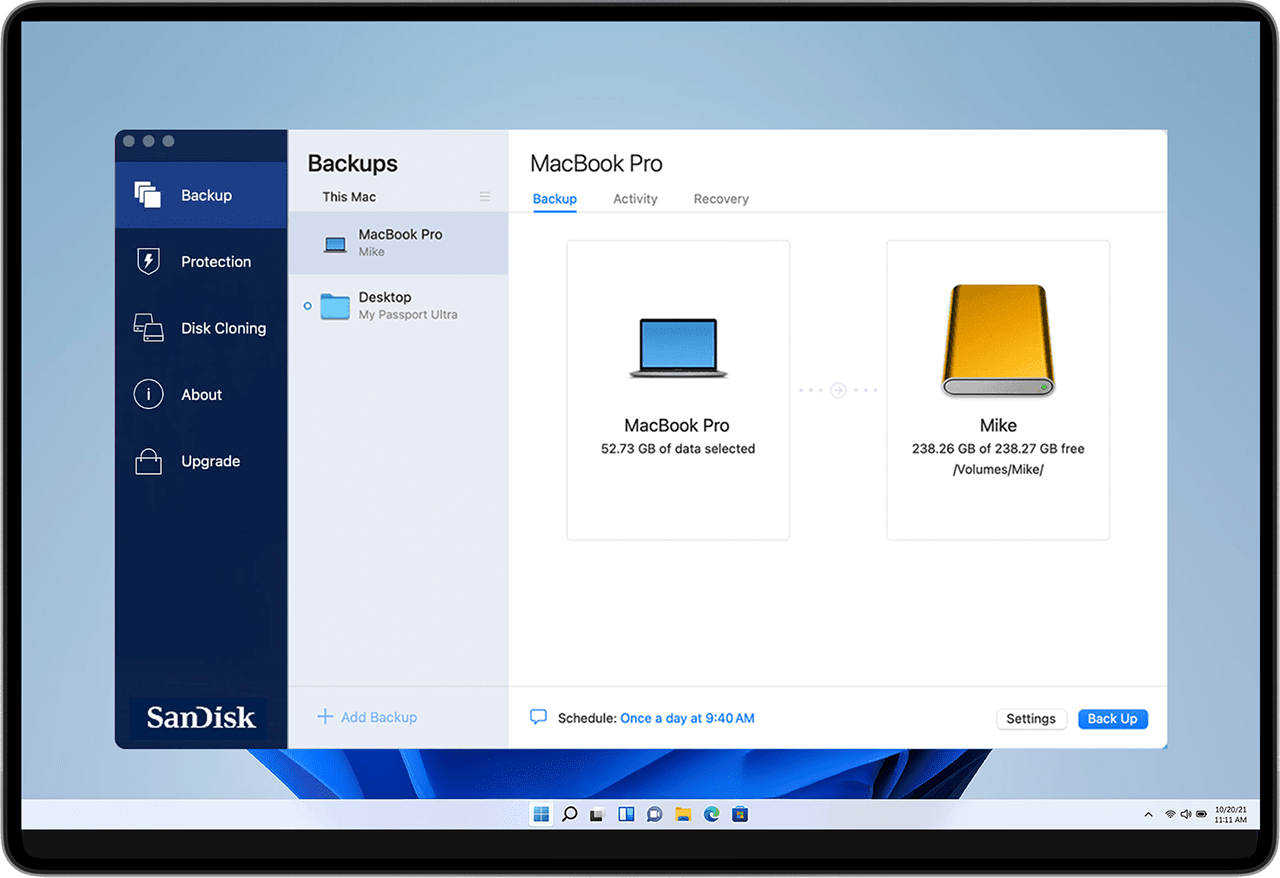 Nuestros discos SSD elegibles compatibles con Mac ofrecen la opción de realizar las copias de seguridad con Acronis True Image for Sandisk o con Time Machine.