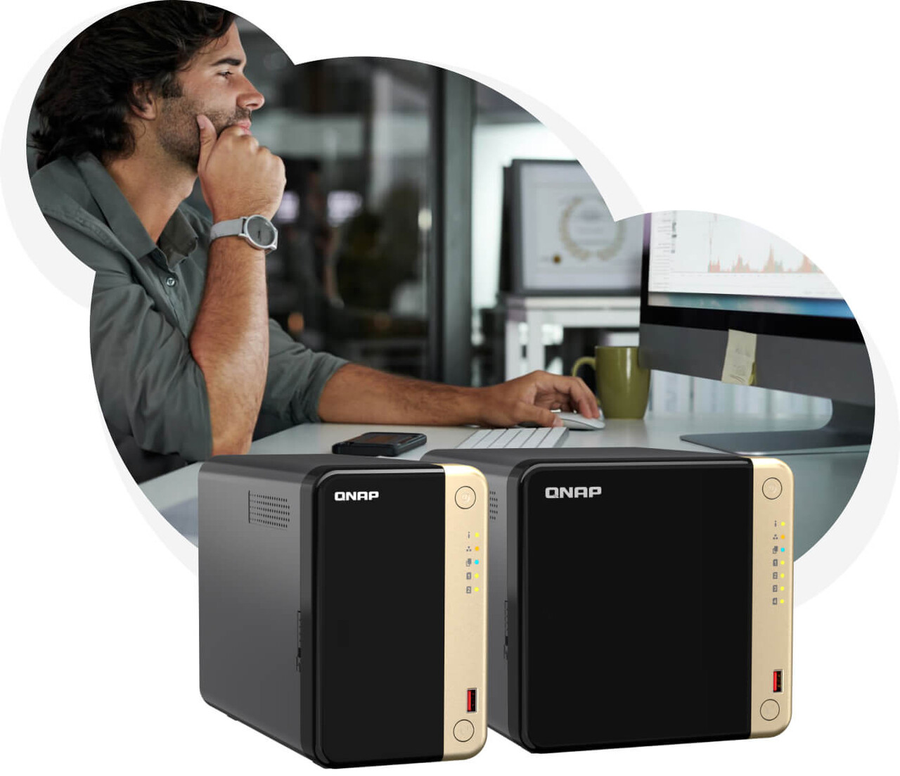 Give your team the tools they need to grow your business. QNAP’s TS-464 and TS-264 deliver serious business-grade storage and support M.2 SSD caching. Streamline your multitasking workflows for file management, backup, collaboration, and video conversion.