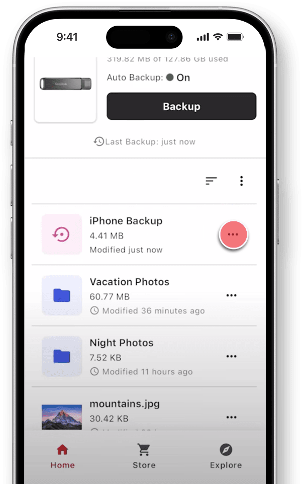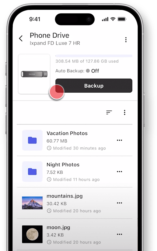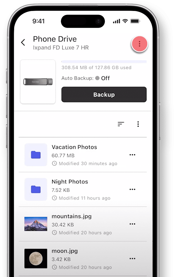 L’application SanDisk Memory Zone est un moyen facile de sauvegarder des données sur des appareils SanDisk compatibles et de faire de la place pour du nouveau contenu. L’appareil est prêt à l’emploi pour enregistrer et partager vos données.
