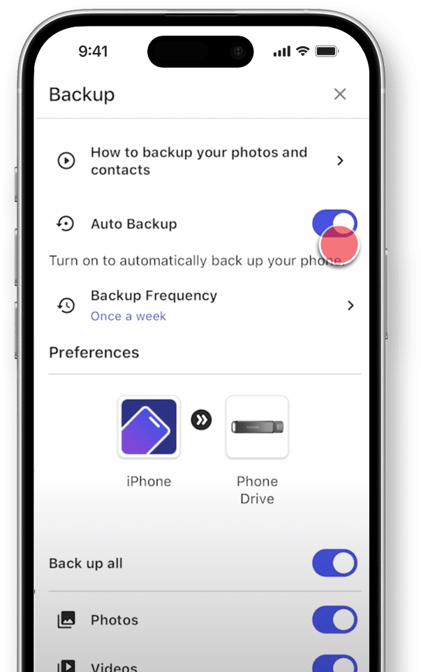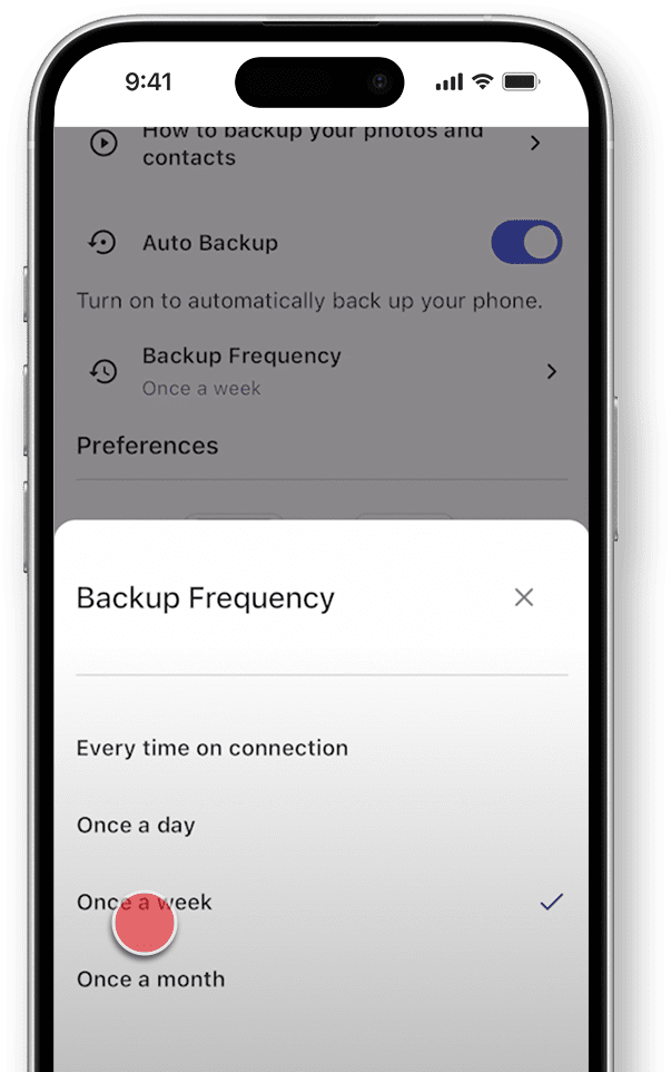 Configurez des sauvegardes pour votre contenu à des intervalles personnalisés : chaque jour, chaque semaine, chaque mois ou chaque fois que vous branchez votre lecteur.