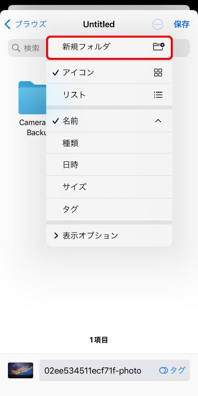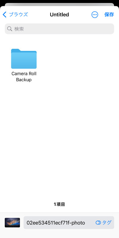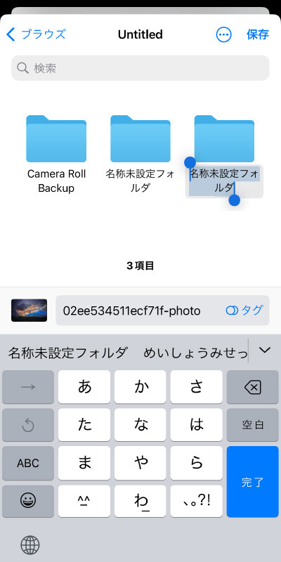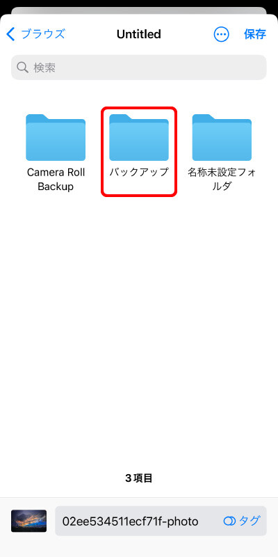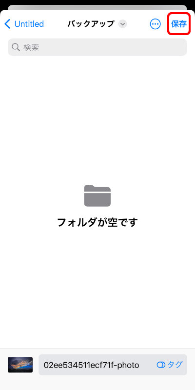 ❻ 作成したフォルダの中の右上「保存」をタップします。
