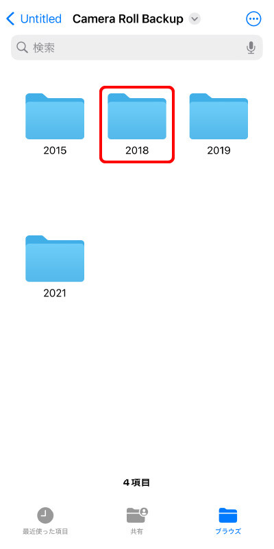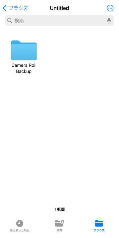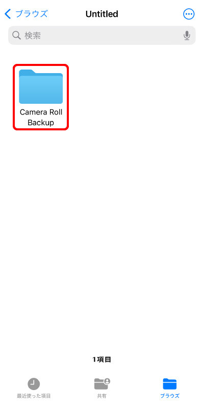 iPhone14以前のデータを、Ixpand Luxe フラッシュドライブに保存している場合、初期設定では写真・動画ファイルは「Camera Roll Backup」のフォルダにコピーされています。ここでは、「Camera Roll Backup」をタップします。(ご使用の環境や、お客様の設定操作によって、保存されている場所は異なります。