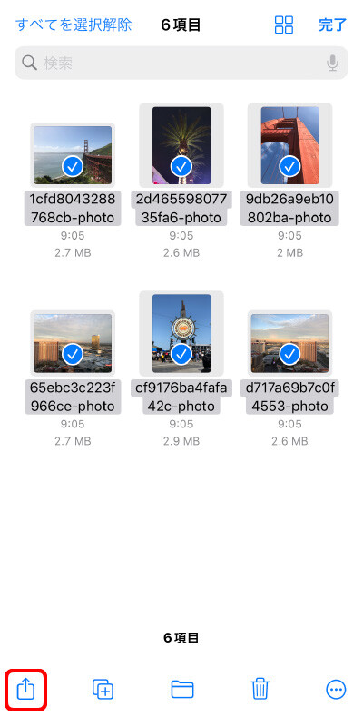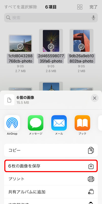 選択した写真・動画データと同数の「○○枚の画像を保存」が表示されますのでタップします。