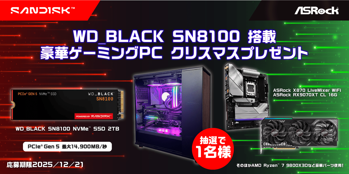 WD_BLACK SN8100を搭載した豪華ゲーミングPCを抽選で1名様にプレゼント!